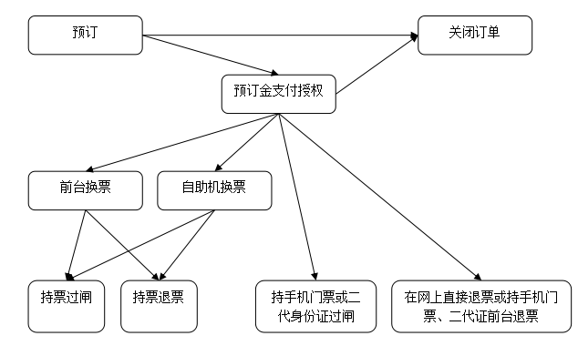 (5)至前台换票、自助机换票后持票过闸,或直接使用您的二代身份证、收到的手机二维码门票过闸,流程终结。